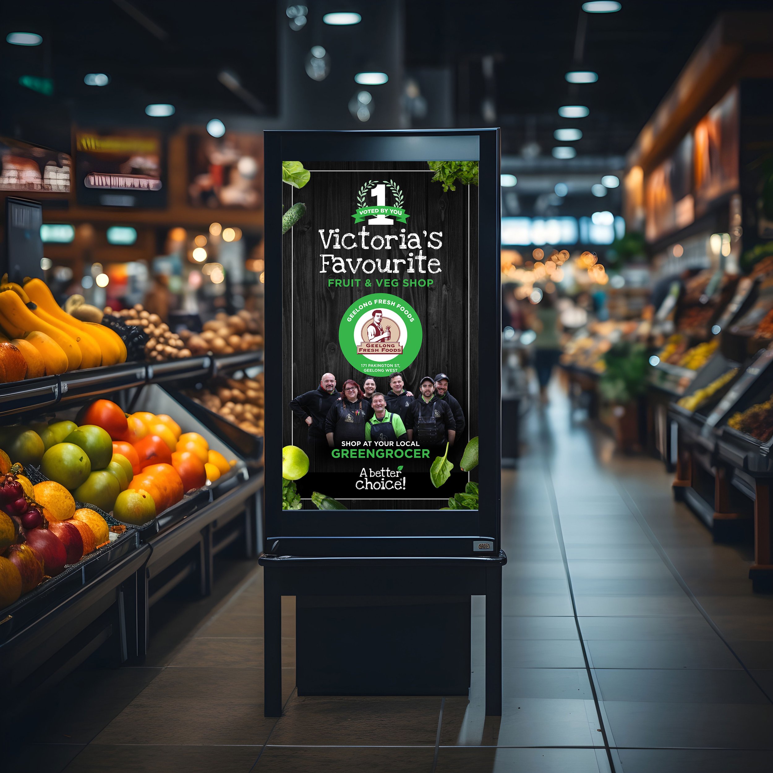 "A Better Choice" is a national initiative supporting over 800 independent fruit and vegetable retailers across Australia. The design challenge is creating materials that feel connected to the community and honour the existing brand guidelines.